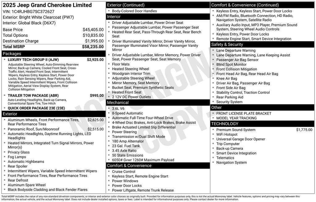 Bright White Clearcoat 2025 Jeep Grand Cherokee Limited 3.6L V6 24V VVT 4WD 8-Speed Automatic