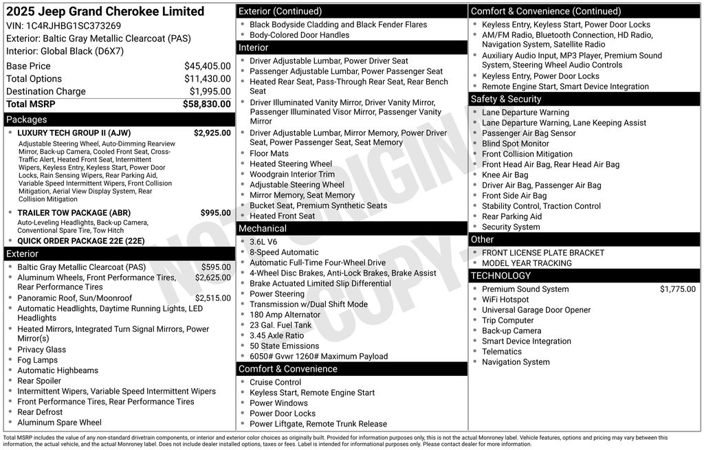 Baltic Gray Metallic Clearcoat 2025 Jeep Grand Cherokee Limited 3.6L V6 24V VVT 4WD 8-Speed Automatic