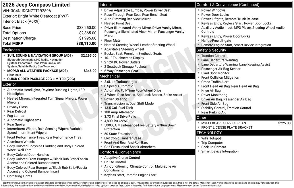 Bright White Clearcoat 2026 Jeep Compass Limited 2.0L I4 DOHC 4WD 8-Speed Automatic