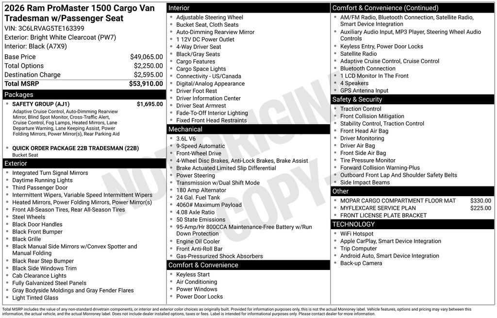 2026 Ram Promaster 1500 Low Roof